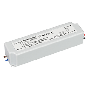 Источник тока с гальванической развязкой для светильников и мощных светодиодов. Входное напряжение 100-240 VAC. Выходные параметры: 9-36 В, 1750 mА, 63 Вт. Встроенный PFC >0.95. Герметичный пластиковый корпус IP 65. Рабочая температура -20…+50C⁰. Габаритные размеры длина 162 мм, ширина 42 мм, высота 34 мм. Гарантийный срок 5 лет.