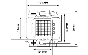 Мощный светодиод типа COB, размер 18.4×20 мм. Чипы USA Bridgelux 23x45mil. Цвет свечения теплый (3000-3200 К). Угол излучения 120градусов. Световой поток 800-900 лм при If=700 мА, P=8 Вт. VF=12-13.6 В. CRI>70. Для использования с солнечными батареями.