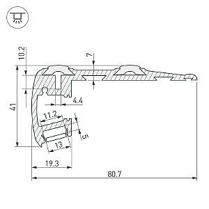 Алюминиевый анодированный высокопрочный профиль для подсветки ступеней. Анодированный в чёрный цвет. Верхняя и нижняя широкая линии подсветки. Антискользящие прокладки в комплекте. Габаритные размеры (L×W×H): 2000x81x41 мм. Ширина площадок для лент: 10 мм (верхняя подсветка) и 13 мм (нижняя подсветка). Экраны, заглушки и другие аксессуары приобретаются отдельно. Цена за 1 метр.
