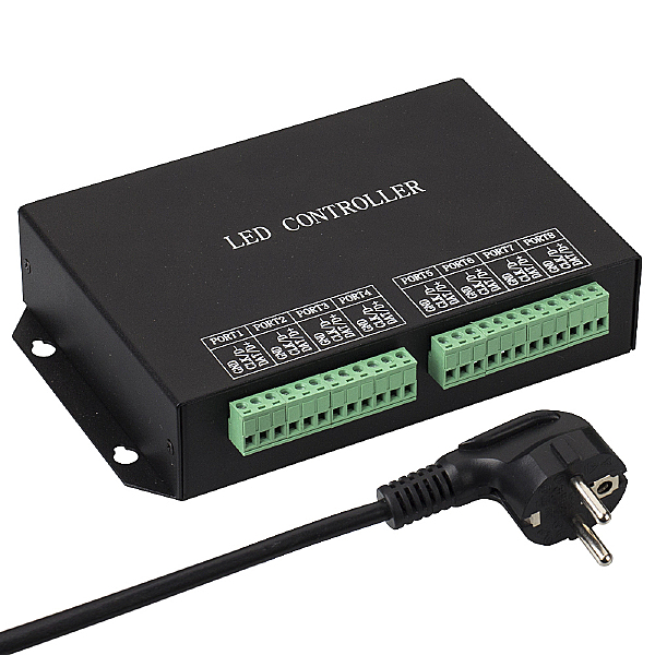 Slave-контроллер для пиксельных модулей и лент. Позволяет воспроизводить динамические эффекты, текст, рисунки, видео. Поддержка протоколов SPI и DMX 512. Управляется Master-контроллером или ПК (ПО LED Studio). 8 выходных портов до 8192 пикселей. Синхронизация с несколькими контроллерами до 100 шт. Напряжение 230 В. Размер 189x123x40 мм.