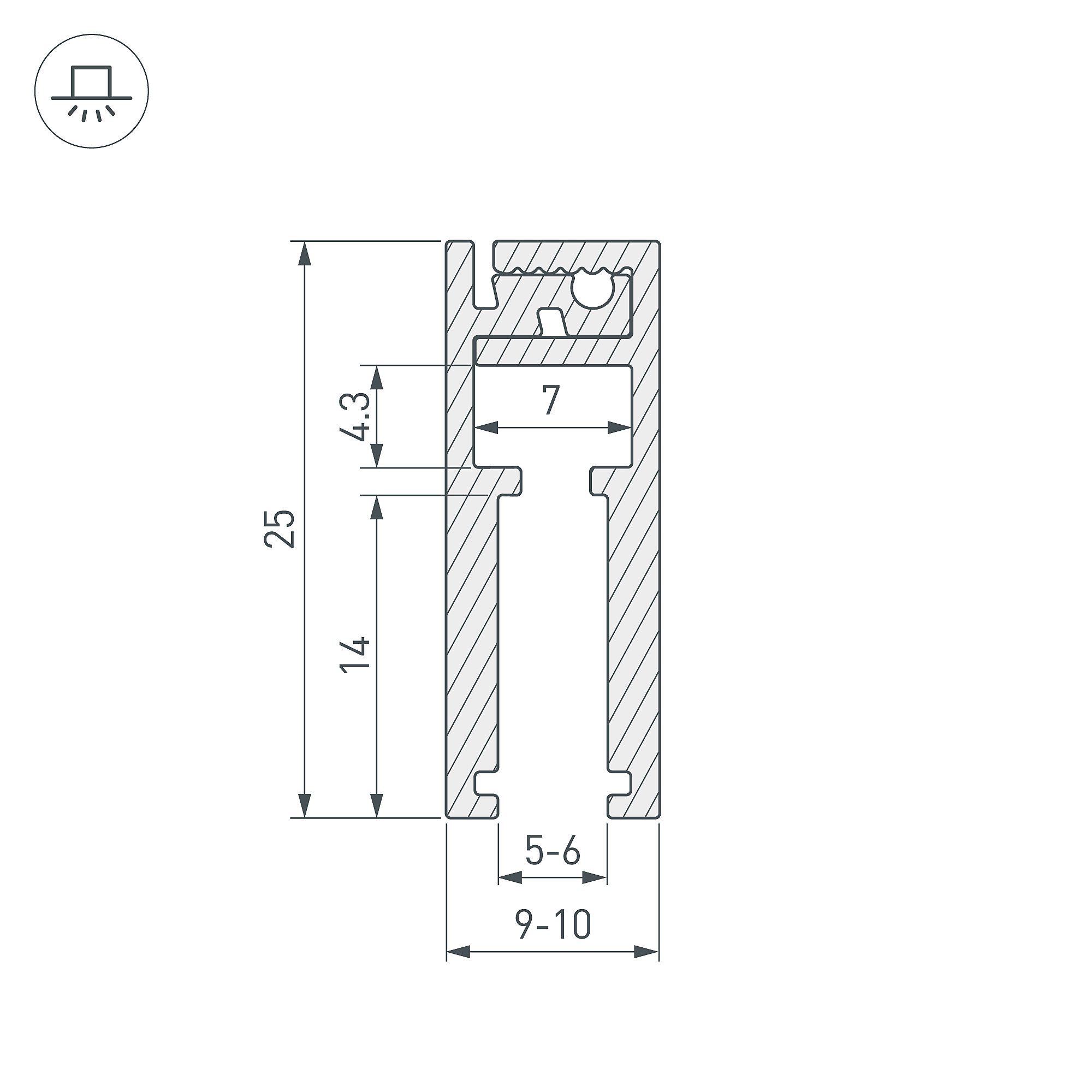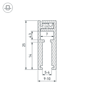 Алюминиевый анодированный профиль для светодиодной подсветки стекла 5-6мм. Фиксируется на кромке стекла на глубину 14мм при помощи 2-х стороннего скотча. Размер 2000х25, высота 9-10мм в зависимости от толщины стекла. Заглушки и другие аксессуары приобретаются отдельно. Цена за 1 метр.