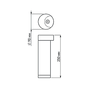 250мм уличный светодиодный светильник для подсветки дорожек. Цвет ТЕПЛЫЙ БЕЛЫЙ 3000К, светодиоды 7Вт Bridgelux (200лм). Влагозащищенный корпус IP54 - черный алюминий, экран закалённое стекло. Питание 230В, мощность 7Вт. Размеры Ф90х250 мм.