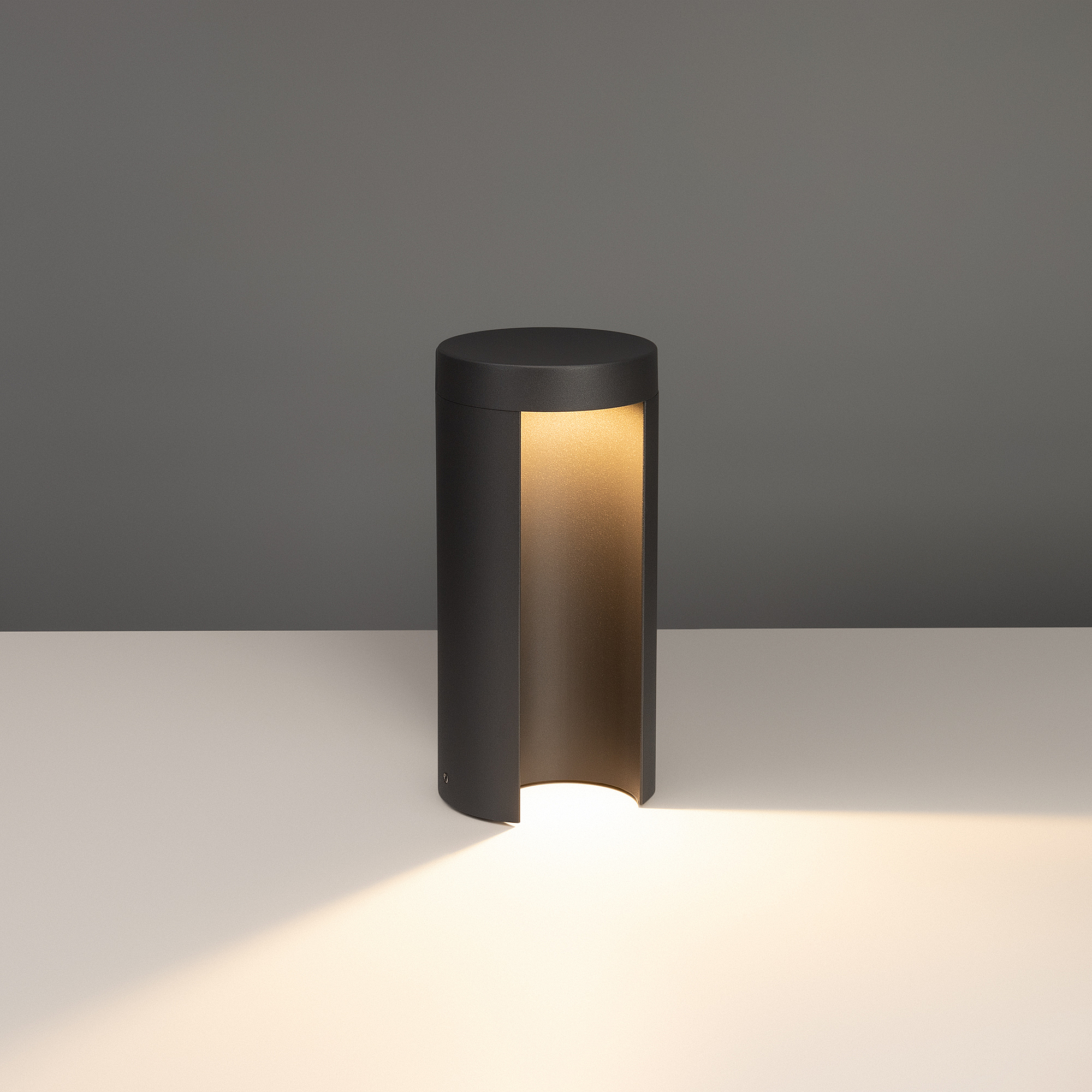 250мм уличный светодиодный светильник для подсветки дорожек. Цвет ТЕПЛЫЙ БЕЛЫЙ 3000К, светодиоды 12Вт CREE (470лм). Влагозащищенный корпус IP54 - темно-серый алюминий, экран закалённое стекло. Питание 220В, мощность 12 Вт. Размеры ДхВ -120х250 мм.