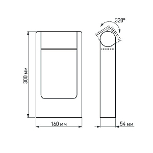 300мм уличный светодиодный светильник для дорожек, изменяемый угол освещения (111 градусов), на 2 стороны. Цвет ТЕПЛЫЙ БЕЛЫЙ 3000К, светодиоды 6Вт SMD (275 лм). Влагозащищенный корпус IP65 - темно-серый алюминий, экран ударопрочный PC. Питание 230В, мощность 6 Вт. Размеры ВхШхГ 300х160х54 мм.