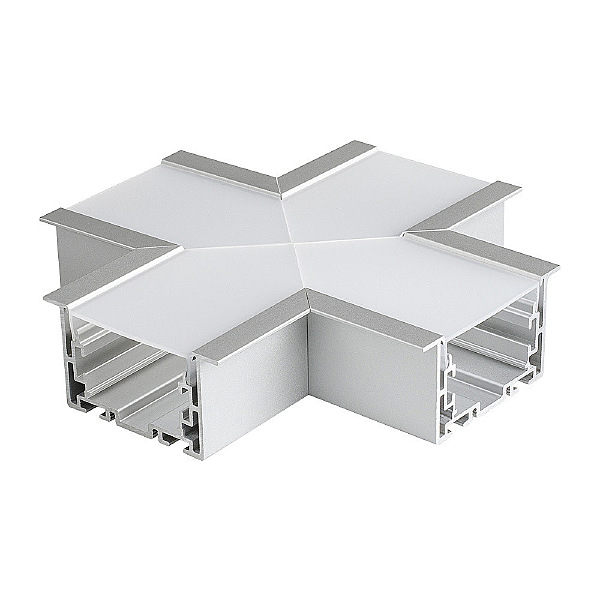 Крестовой угол в сборе, для соединения 4-х профилей S2-LINIA69-F под прямыми углами 90градусов. Экран образует линию "Х" на плоскости. В комплекте матовый экран, соединители. Размеры 150х150мм.