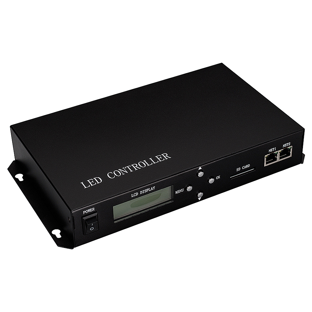 Master-контроллер для синхронизации до 255 контроллеров HX-801RA, HX-801RC, HX-802RA, 2 выходных Ethernet-порта до 177 000 пикселей, без прямого выхода на ленты и модули. Онлайн управление с ПК запись программ ПО LED Studio. Воспроизведение с SD-карты (ПО LED Build). Внешнее управление с DMX консоли. Напряжение 230 В. ПДУ в комплекте, размер 270×150×44 мм.