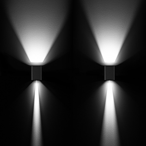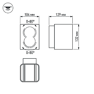 Уличный светодиодный светильник для стен, изменяемый угол освещения 0градусов-80градусов, свет вверх-вниз на 2 стороны. Цвет ТЕПЛЫЙ БЕЛЫЙ 3000К, светодиоды 2x6Вт CREE (750 лм). Влагозащищенный корпус IP54 - белый (RAL9003) алюминий, экран ударопрочный PC. Питание 230В, мощность 12 Вт. Размеры ВхШхГ -138х104х129 мм.