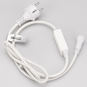 Шнур питания для светодиодных гирлянд постоянного свечения. Материал оболочки ПВХ. Цвет провода белый. В комплект входит: шнур питания с вилкой европейского стандарта (IP44), 2pin разъём подключения к гирлянде, выпрямитель AC/DC (1.6A). Длина провода 1.5 метра.