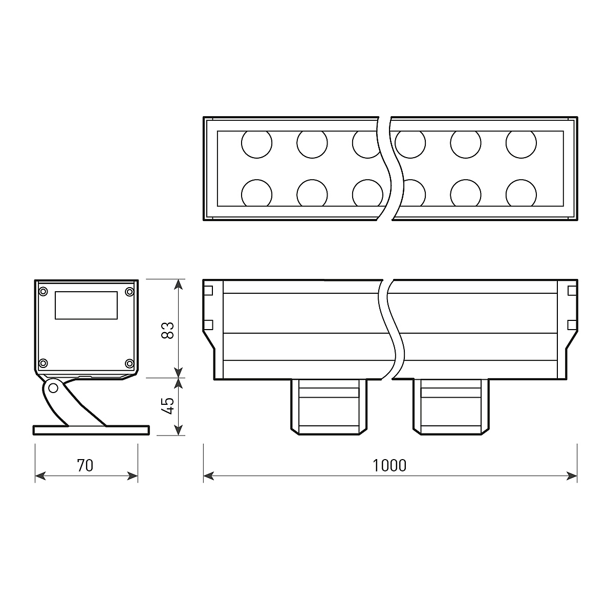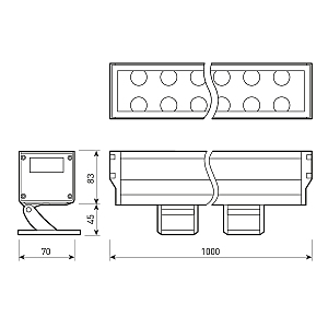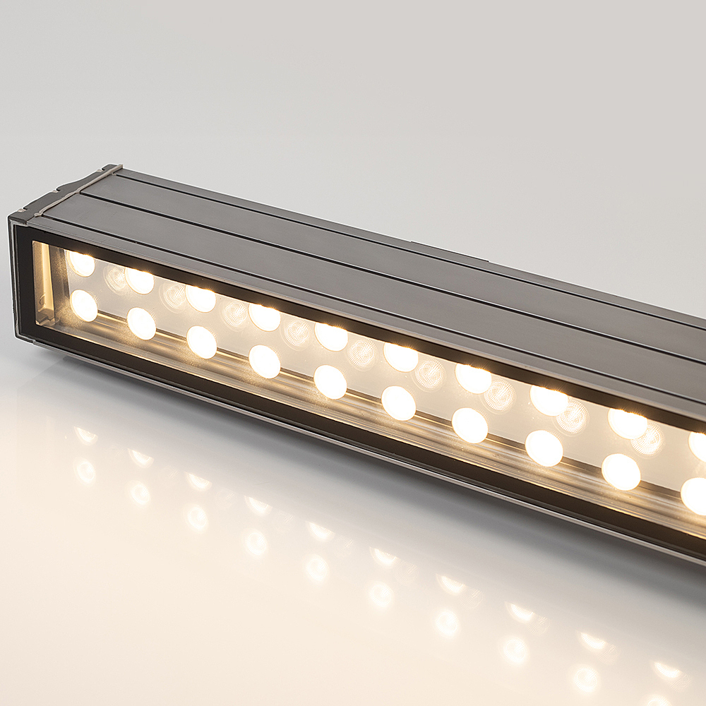 Линейный светодиодный прожектор. Мощность 54W, напряжение питания AC 230V. Светодиоды OSRAM 54 штуки. Цвет светодиодов ТЁПЛЫЙ БЕЛЫЙ (3000K), световой поток 80Lm/Watt, угол рассеивания 30градусов. Корпус: алюминиевый сплав и армированное стекло. Цвет корпуса серый, степень влагозащиты IP65. Габариты 1000x128x70мм. Гарантия 3 года с даты продажи.