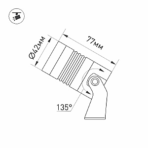 Уличный светодиодный прожектор, мощность 5Вт, угол освещения 25градусов. Цвет ТЕПЛЫЙ 3000К, световой поток 310лм. Влагозащищенный корпус IP67 - темно-серый алюминий, экран из закалённого стекла. Угол поворота корпуса в вертикальной плоскости 135градусов. Питание 230В, мощность 5 Вт. Размеры DxH -Ø42х77мм. В комплекте 1м провод.