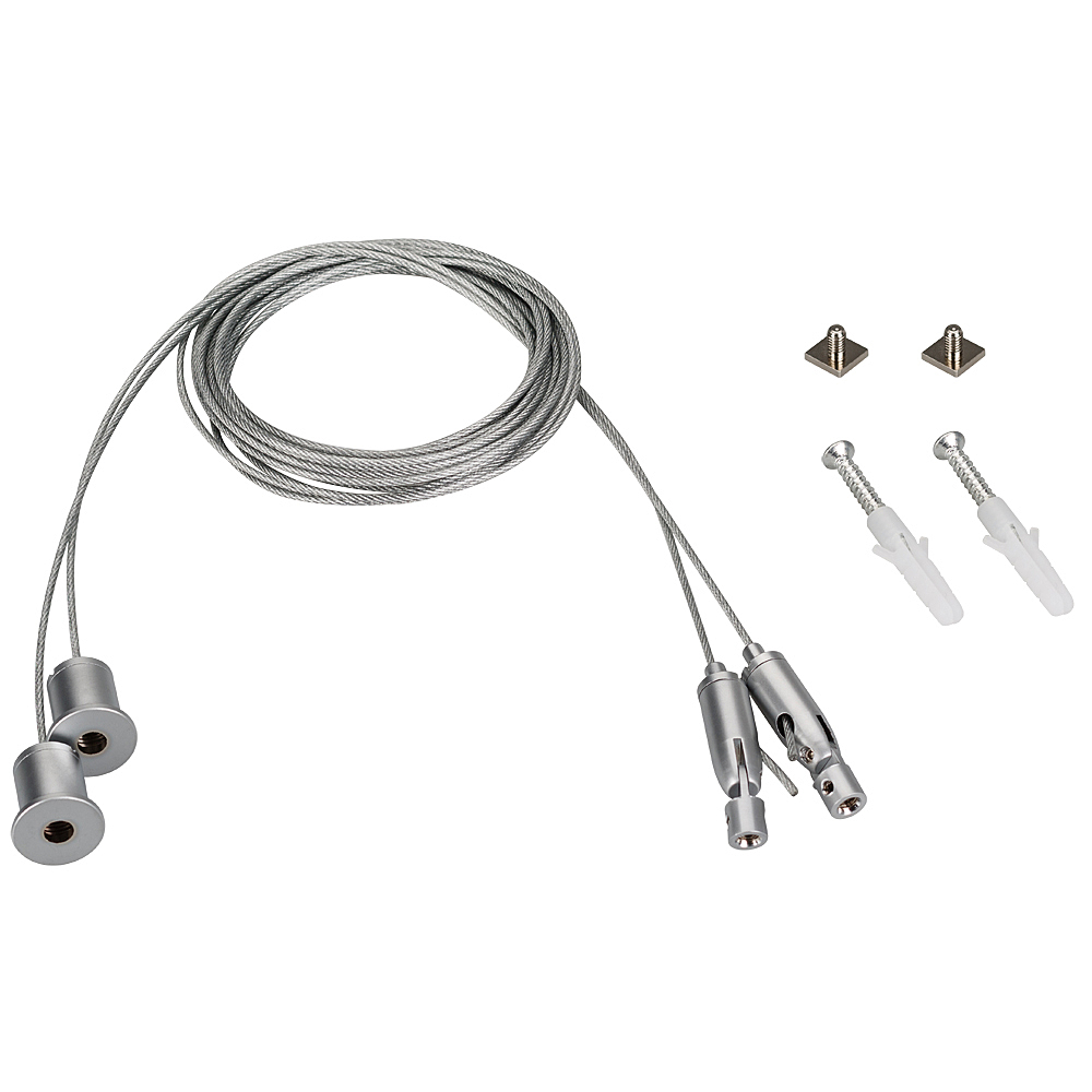 Подвес для профилей SL-ARC-3535-D1500-N90 и SL-ARC-3535-D1500-W90. Длина 2 метра. В комплекте 2 подвеса, винт с площадкой 9мм - 2шт, дюбели, шурупы. Максимальная нагрузка на 1 тросик 17,5 кг. Цена за 1 комплект.