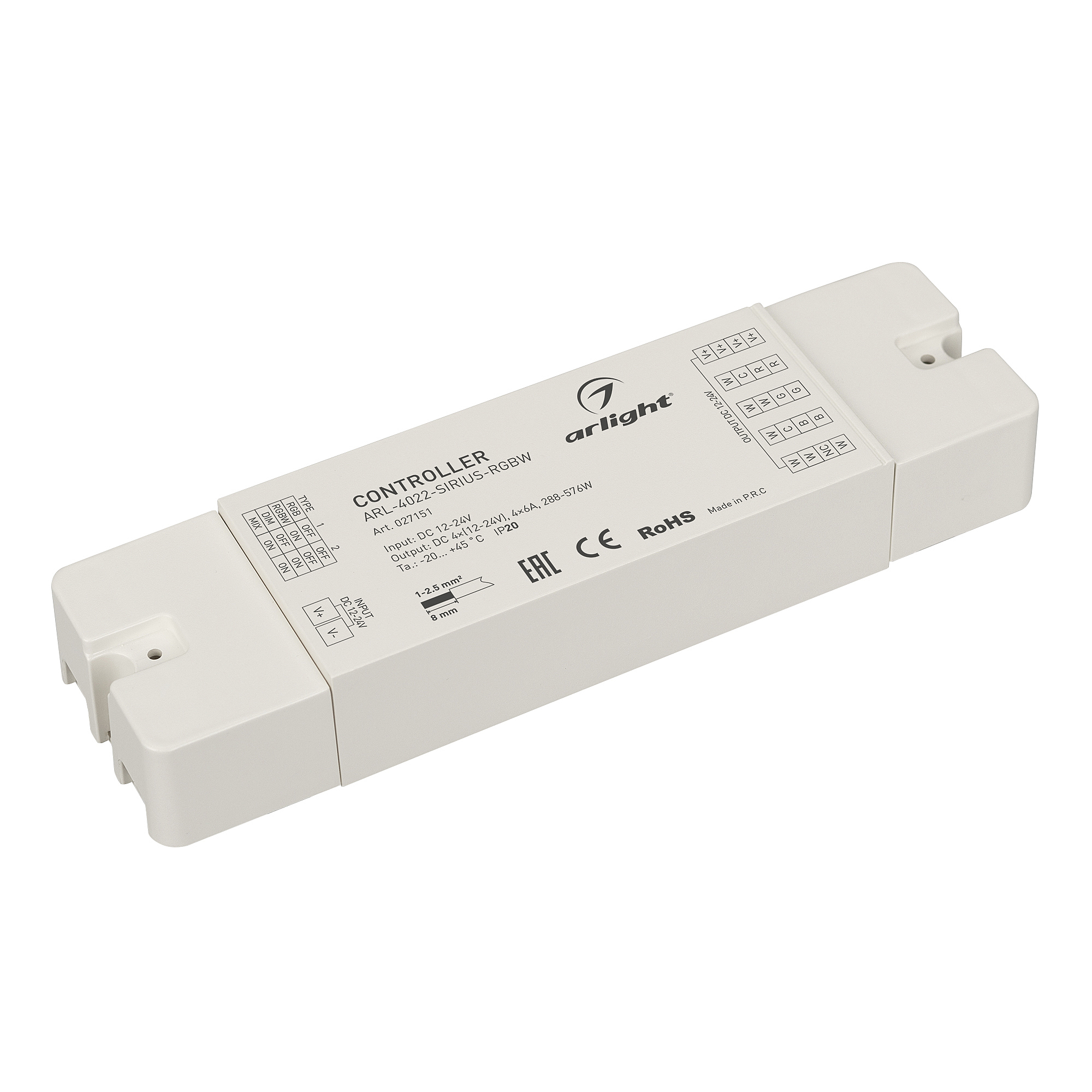 Контроллер для светодиодной ленты (ШИМ). 4 в 1, подходит для DIM/MIX/RGB/RGBW лент. Питание/рабочее напряжение 12-24VDC, максимальный ток 6A на канал, 4 канала, максимальная мощность 288-576W. Винтовые клеммы. Корпус - PVC. Габариты 160х46х25 мм. Совместимые пульты см. в сопутствующих товарах.