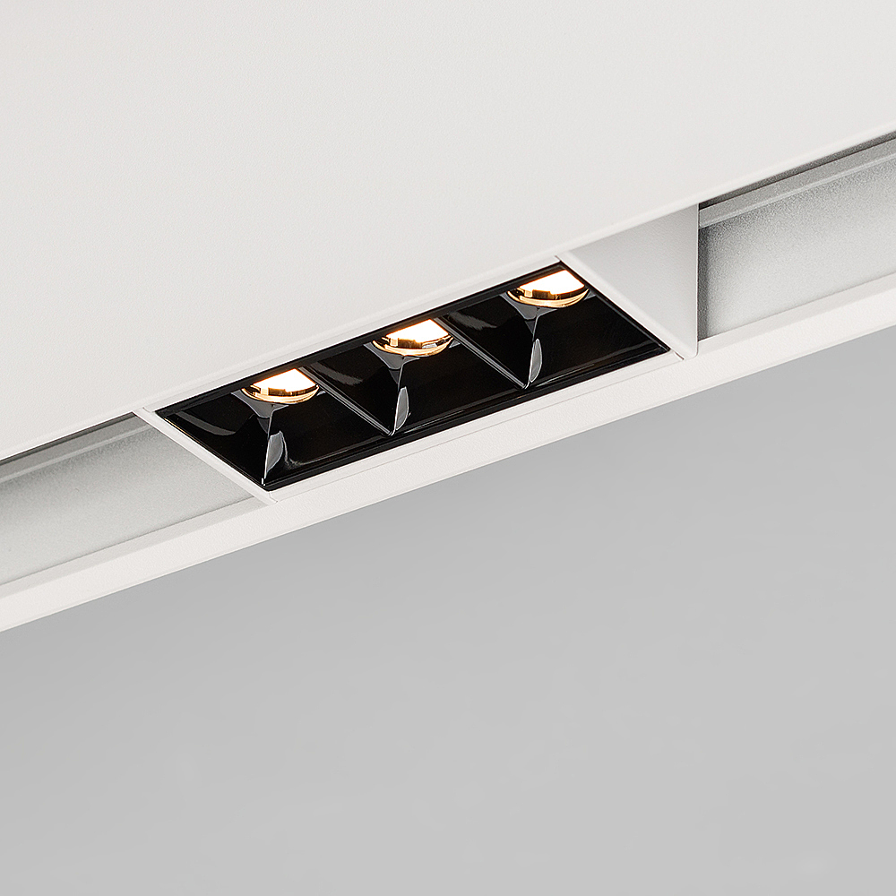 Светильник для магнитных треков шириной 45мм, 3Вт. Цвет свечения ДНЕВНОЙ 4000K, световой поток 226лм, угол 15градусов, CRI>90. Корпус прямоугольный, металл, цвет белый, IP20. Размеры LxWxH 84x35x43мм. Входное напряжение DC24V, мощность 3Вт. Драйвер DС24V/AC230V поставляется отдельно. Диммируется только с 026407(1), 027633.