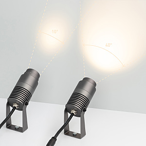 Уличный светодиодный прожектор, мощность 8 Вт, регулируемый угол освещения 10-40°. Цвет ТЕПЛЫЙ 3000К, световой поток для угла 10° 240 для угла 40° 420лм. Влагозащищенный корпус IP67 - темно-серый алюминий, экран из закаленного стекла. Угол поворота корпуса в вертикальной плоскости 135°. Питание 230 В, мощность 8 Вт. Размеры DxH - Ø52x103 мм. В комплекте 1 м провод.