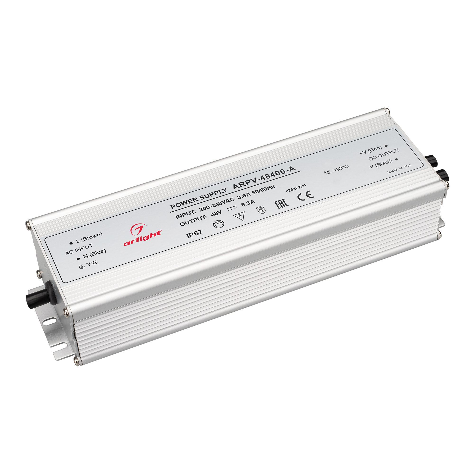 Источник напряжения с гальванической развязкой для светодиодных изделий. Входное напряжение 200-240 VAC. Выходные параметры: 48 В, 8,3 А, 400 Вт. Встроенный PFC >0,5. Герметичный алюминиевый корпус IP 67. Рабочая температура -30…+50C⁰. Габаритные размеры длина 238 мм, ширина 74 мм, высота 46 мм. Гарантийный срок 3 года.