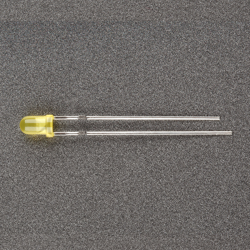 Поставка под заказ от 5000 шт. Выводной круглый светодиод, d=3 мм, диффузная желтая линза. Цвет свечения желтый (588 нм), мигающий. Угол излучения 45градусов. Сила света Iv=800-1000 мкд при If=20мА. VF=3-5 В. Частота мигания f =1.5 Гц.