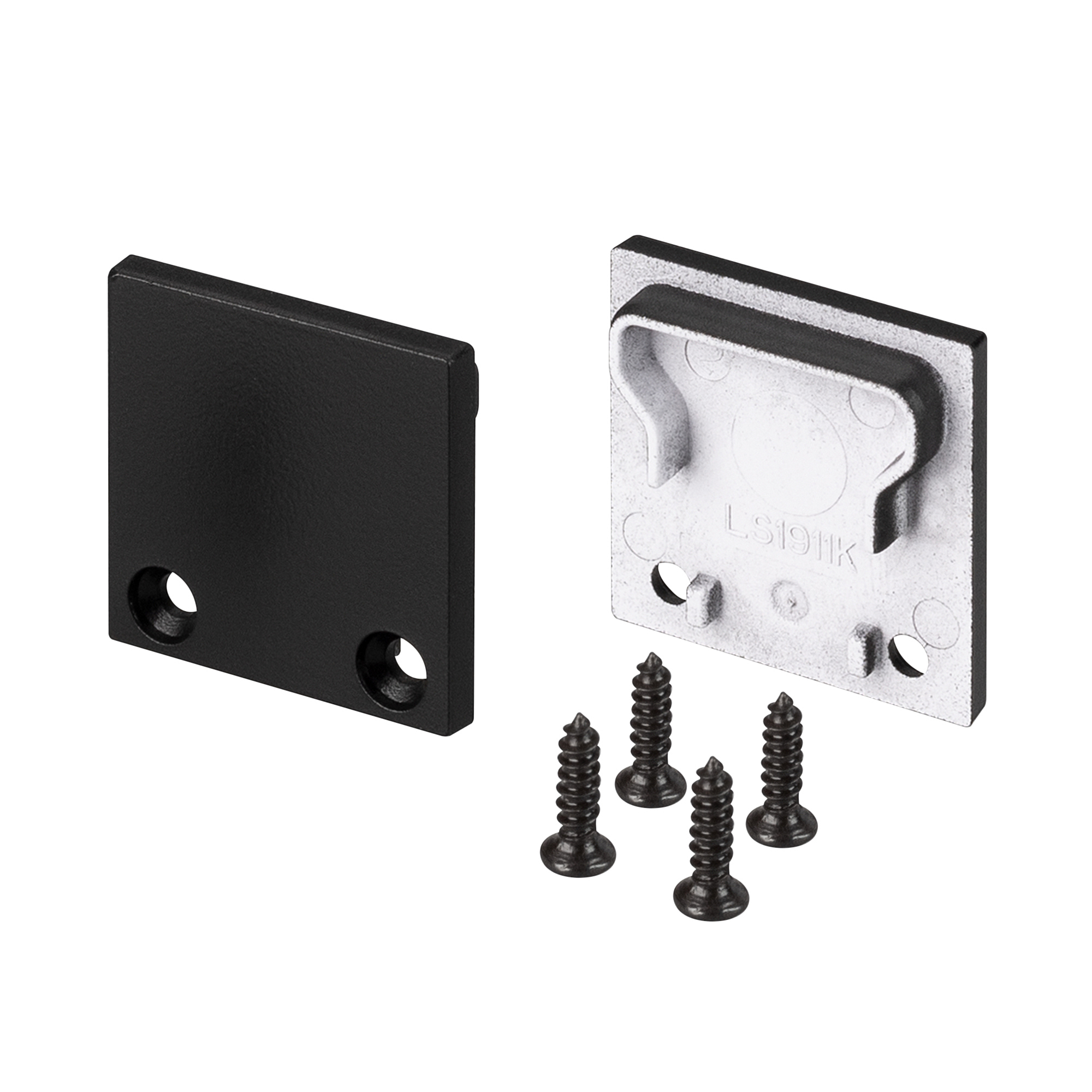 Пара заглушек чёрного цвета (без отверстия) для профиля SL-LINE-2011M BLACK с экраном SQUARE. В комплекте 2 заглушки, 4 шурупа. Цена за весь комплект.