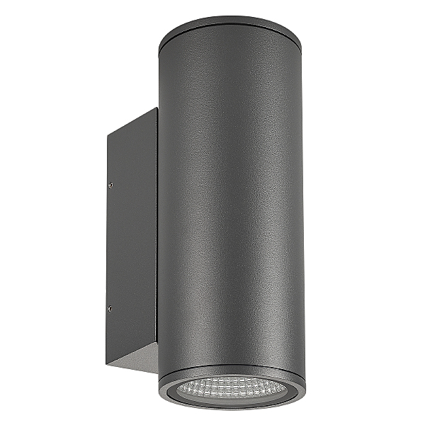 Накладной настенный светильник 2x12Вт, серый алюминиевый корпус, оптическое закаленное стекло. Цвет ТЕПЛЫЙ БЕЛЫЙ 3000K, св.поток 1720лм, CRI(Ra)>80, угол 44градусов, свет вверх-вниз. Размер 133x90x220мм. IP54. Питание AC230V, 24Вт, встроенный драйвер.