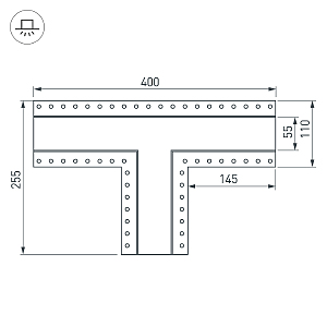 Тройник в сборе, для профиля SL-LINIA55-FANTOM. В комплекте тройник с экраном, соединители, винты, шестигранный ключ.