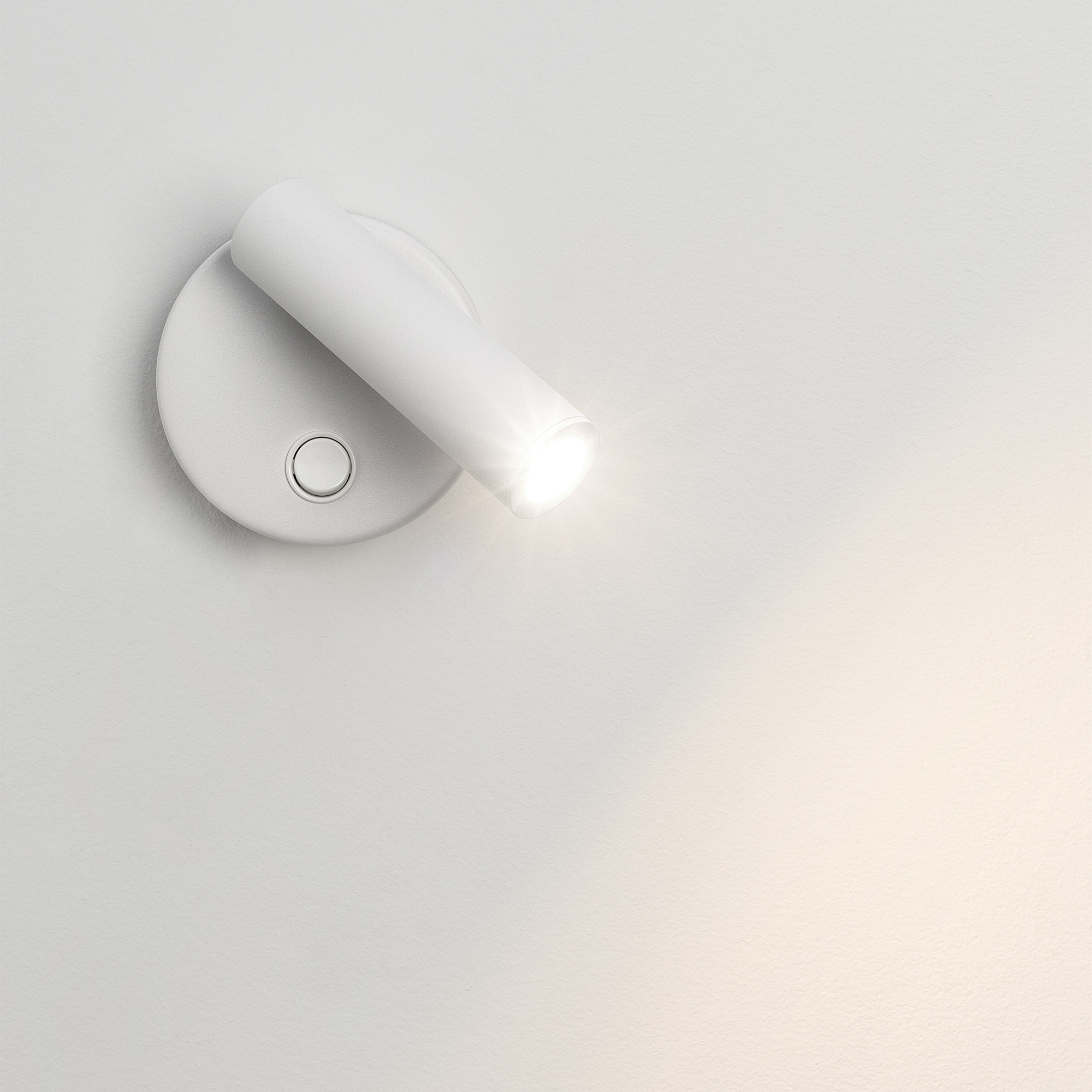 Накладной настенный светильник 3Вт,белый алюминиевый корпус. Цвет ТЕПЛЫЙ БЕЛЫЙ 3000K, св.поток 200лм, CRI(Ra)>80, угол 20градусов. Размер Основание Ф90x31мм, Светоизлучатель Ø30×110 мм. IP20. Питание AC220-240V, 3Вт, встроенный драйвер.