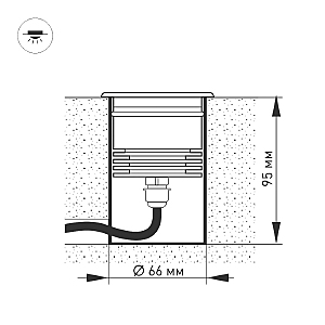 Встраиваемый светодиодный светильник для грунта и пола. Мощность 9Вт, световой поток 500лм, цвет ДНЕВНОЙ 4000К. CRI(Ra)>80, угол 60градусов асимметричный, наклон луча 30градусов. Круглый влагозащищенный корпус IP67, нержавеющая сталь. Экран закалённое стекло. Питание 230В, 9Вт. Размер DxH Ø78x95мм. Установка в отверстие DxH Ø66x95мм.