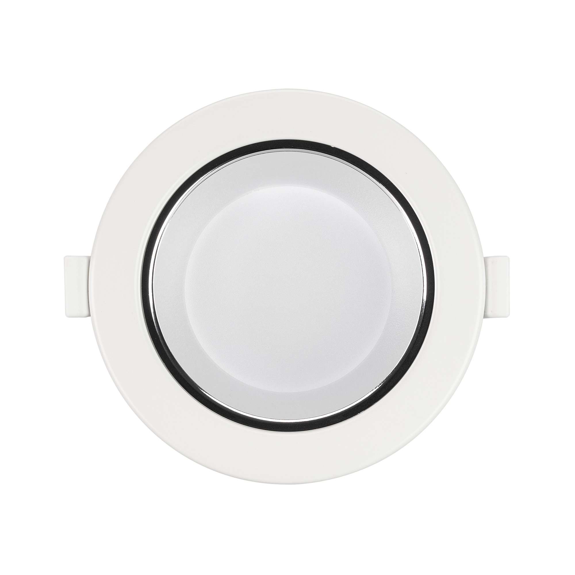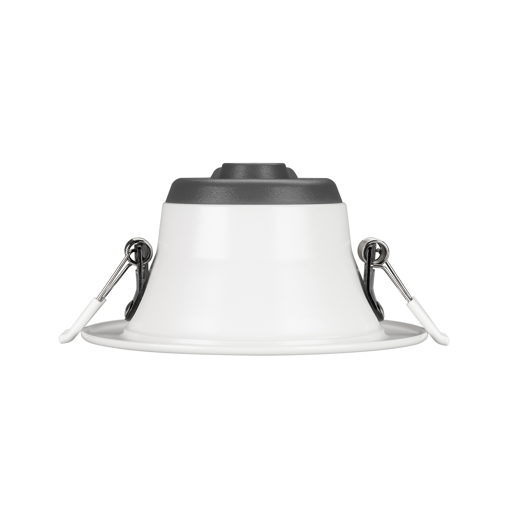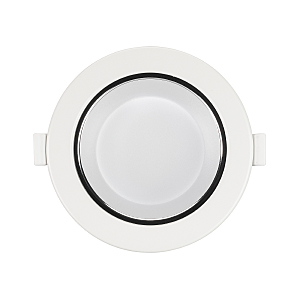 Светильник даунлайт с изменяемой цветовой температурой и переключателем на корпусе. Мощность 10 Вт, св. поток 880 лм, 88 лм/Вт, белый 6000К, или дневной 4000К, или теплый 3000К (выбор цвета свечения при установке, фиксированный), CRI>80, угол 80градусов, напряжение питания 230 В. Белый круглый корпус из алюминия, степень защиты IP20. Размер: диаметр 113 мм, высота 59 мм. Монтаж встраиваемый, установочное отверстие: диаметр 90-102 мм. Драйвер 18-35 В, 350 мА, пульсация <0,7%.