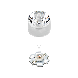 Одиночная линза цельная (с несъемным холдером) для мощного светодиода Emitter. Угол обзора: вертикальный 10градусов, прозрачная линза. Материал PC. Диаметр 21.8 мм, высота 13.45 мм.