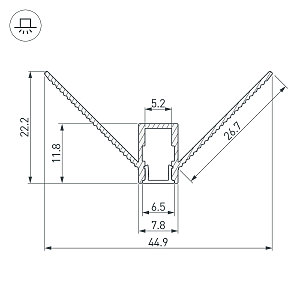 Алюминиевый анодированный угловой профиль для светодиодных лент и линеек, под строительную отделку.Декоративная контурная подсветка внешних углов стен и конструкций. Габаритные размеры (L×W×H): 2000x44.9x22.2 мм. Ширина площадки для ленты 5.2 мм. Экраны, заглушки и другие аксессуары приобретаются отдельно. Цена за 1 метр.