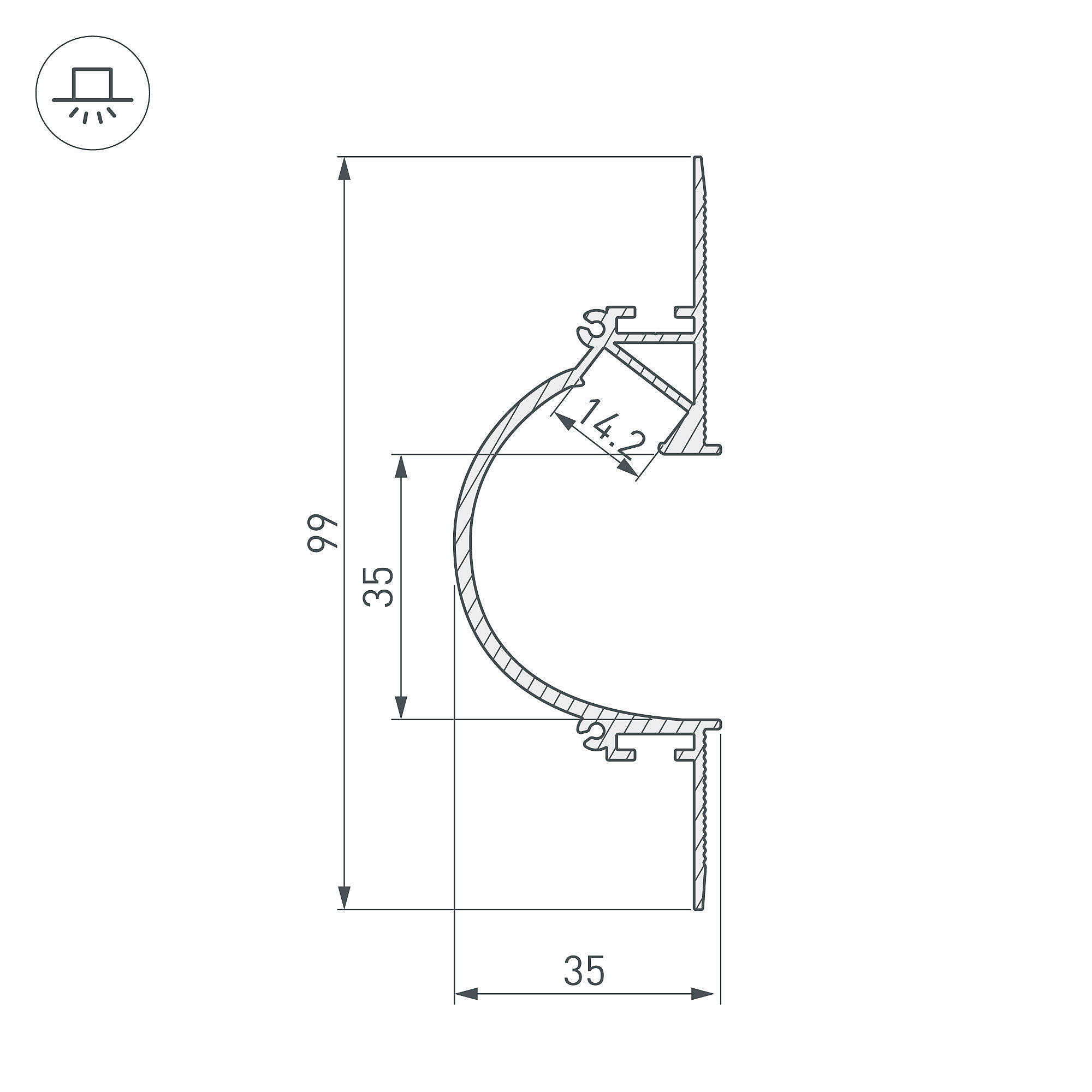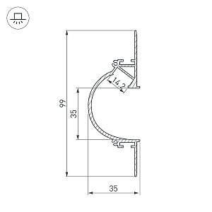 Алюминиевый профиль для светодиодных лент и линеек с боковым свечением. Цвет-белый RAL9003 (порошковая окраска). Габаритные размеры (L×W×H): 2000x99x35 мм. Ширина площадки для ленты 14,3 мм. Заглушки и другие аксессуары приобретаются отдельно. Цена за 1 метр.