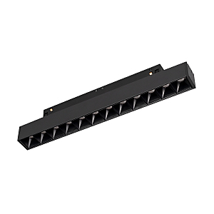 Светильник для магнитных треков MAG-FLEX шириной 26 мм. Мощность 8 Вт, св. поток 460 лм, 58 лм/Вт, дневной 4000 K, CRI>90, угол 24градусов, напряжение питания 48 В. Черный прямоугольный корпус из металл, экран поликарбонат, степень защиты IP20. Размер: длина 235 мм, ширина 22 мм, высота 42 мм. Монтаж на трек MAG-FLEX. Пульсация <1%.