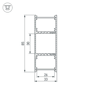 Настенный алюминиевый анодированный профиль для светодиодных лент и линеек с двусторонним свечением. Габаритные размеры (L×W×H): 2000x33x85мм. Состоит из двух частей - профиля и декоративной накладки. Ширина площадок для лент 26 мм. Экраны, заглушки и другие аксессуары приобретаются отдельно. Цена за 1 метр.
