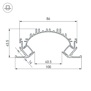 Алюминиевый анодированный профиль для светодиодных лент и линеек с двусторонним боковым свечением. Габаритные размеры (L×W×H): 2000x100x43.5 мм. Ширина площадок для ленты 14 мм. Заглушки и другие аксессуары приобретаются отдельно. Цена за 1 метр.