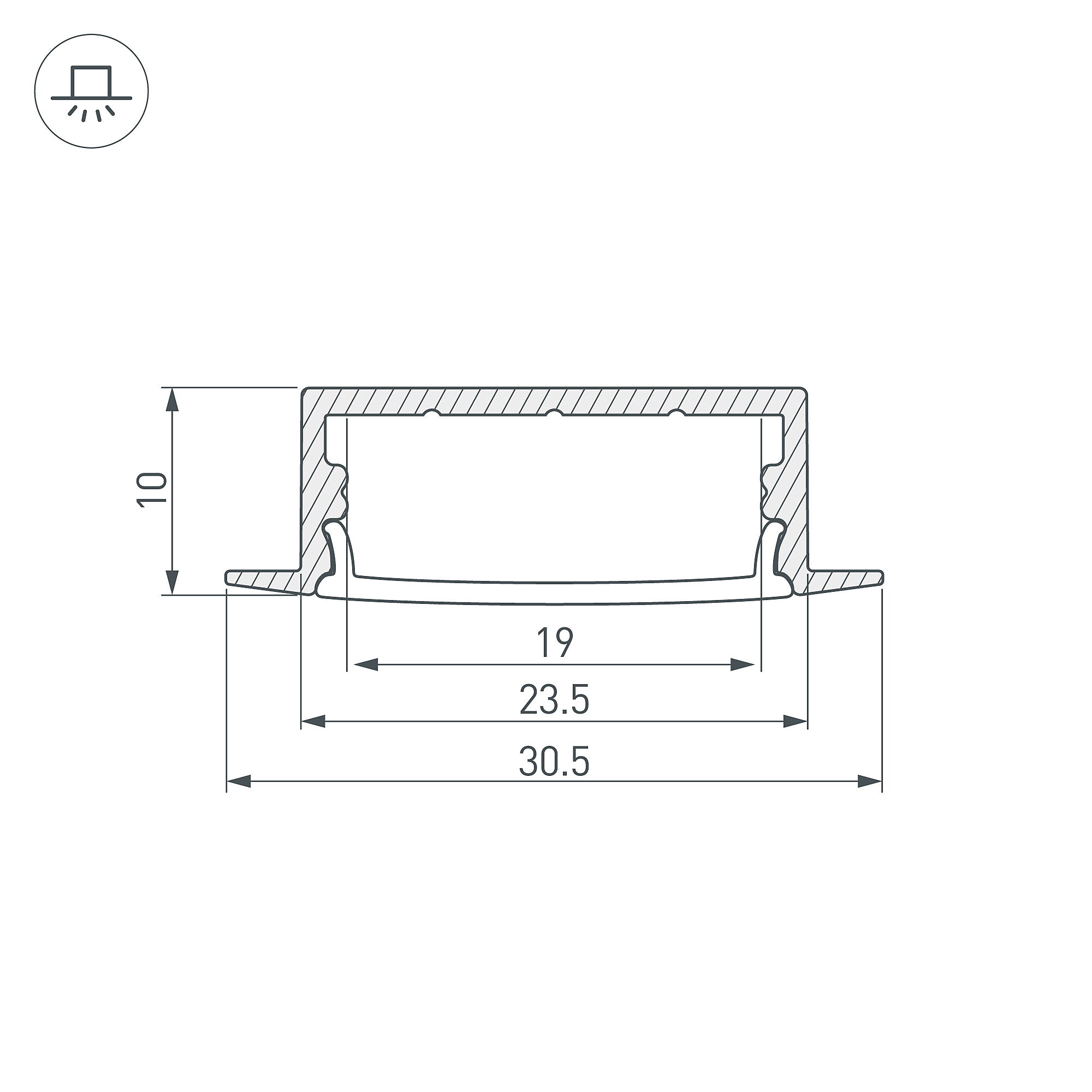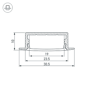Комплект с матовым экраном (016585) и заглушками (2 шт), в индивидуальной упаковке.Алюминиевый анодированный встраиваемый профиль для светодиодных лент и линеек. Габаритные размеры (L×W×H): 2000x30,5x10 мм. Паз для установки 23,5мм. Ширина площадки для ленты 19 мм. Цена за комплект.