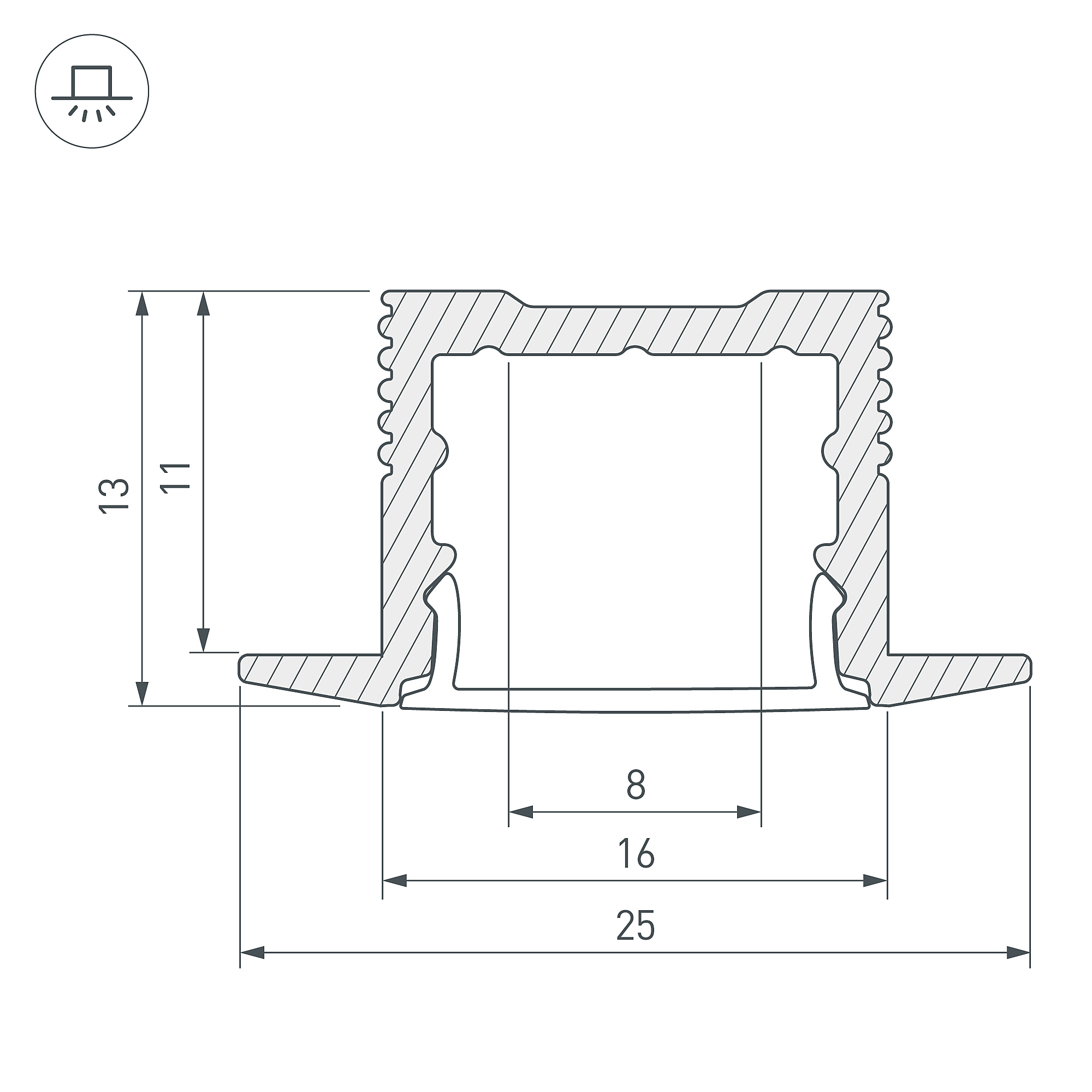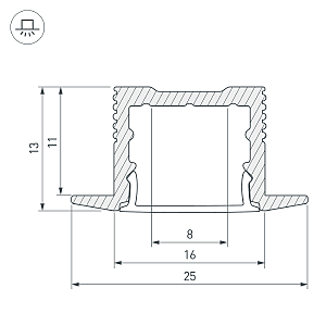 Алюминиевый анодированный профиль для светодиодных лент и линеек. Цвет - чёрный RAL9005 (порошковая окраска). Габаритные размеры (L×W×H): 2000x25x13 мм, паз для установки 16 мм. Ширина площадки для ленты 12 мм. Экраны, заглушки и другие аксессуары приобретаются отдельно. Цена за 1 метр.