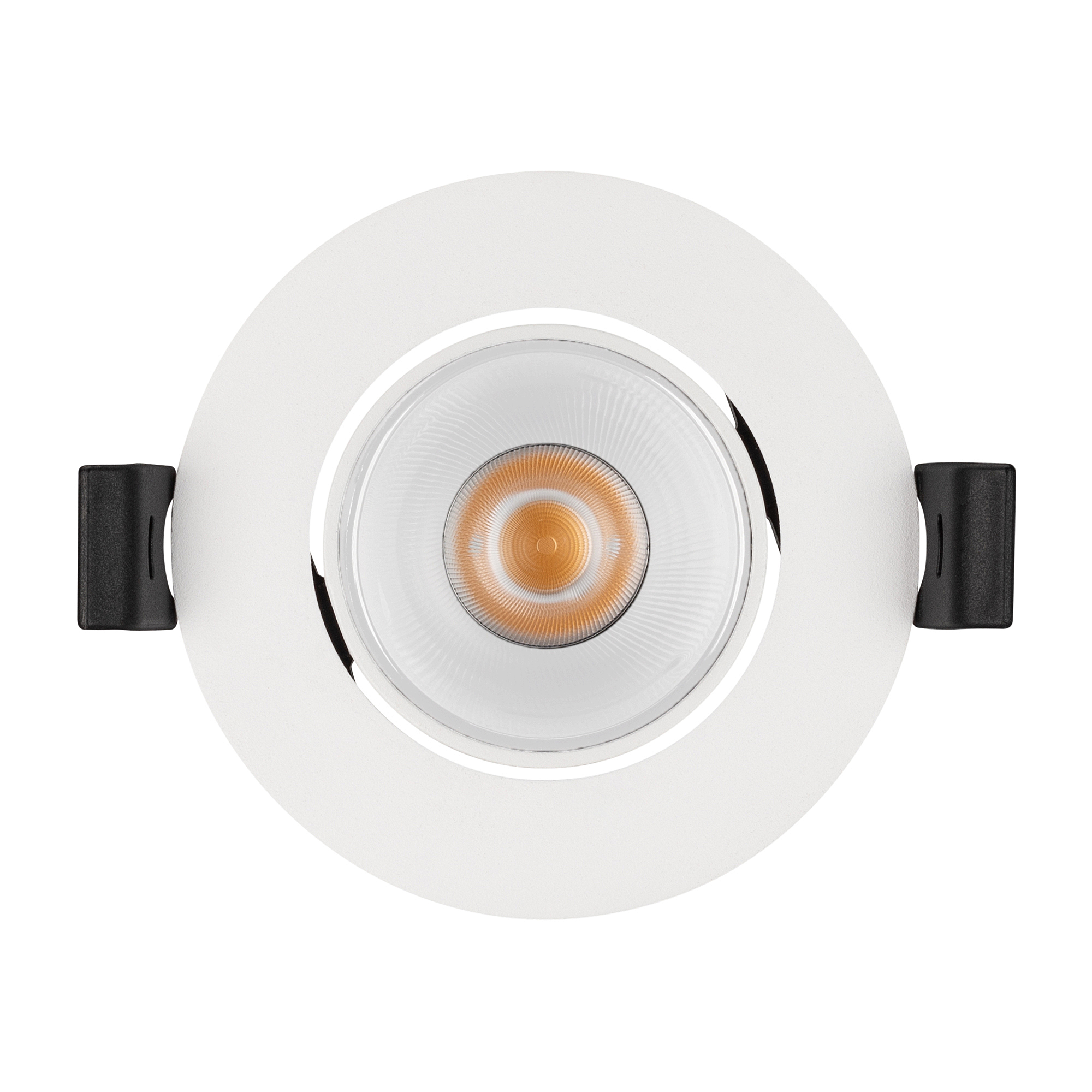 Встраиваемый поворотный светильник даунлайт. Мощность 8.4 Вт, св. поток 800 лм, 95 лм/Вт, дневной 4000 K, CRI>90, UGR<16, угол 32градусов, напряжение питания 230 В. Белый круглый корпус из алюминия, степень защиты IP20. Размер: диаметр 82 мм, высота 51 мм. Монтаж встраиваемый, установочное отверстие: диаметр 75 мм. Драйвер 21-42 В, 200 мА, пульсация <2%.