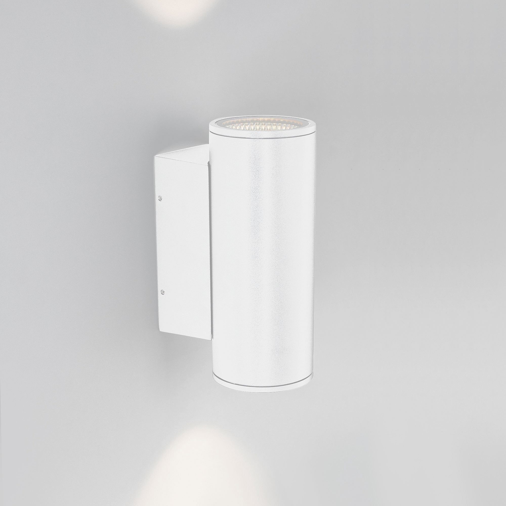 Накладной настенный светильник 2x12Вт, белый алюминиевый корпус, оптическое закаленное стекло. Цвет ДНЕВНОЙ 4000K, св.поток 1720лм, CRI(Ra)>80, угол 44градусов, свет вверх-вниз. Размер 133x90x220мм. IP54. Питание AC230V, 24Вт, встроенный драйвер.