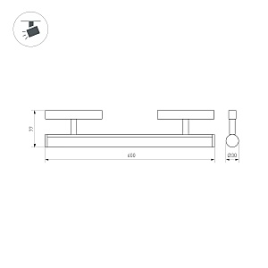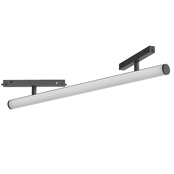 Светильник для магнитных треков MAG-ORIENT шириной 26 мм с двумя коннекторами. Мощность 20 Вт, св. поток 2000 лм, 100 лм/Вт, теплый 3000 K, CRI>90, угол 180градусов, напряжение питания 48 В. Черный фигурный корпус из алюминия, экран поликарбонат, степень защиты IP20. Размер: диаметр 30 мм, длина 600 мм, высота 77 мм. Монтаж на трек MAG-ORIENT. Пульсация <1%.