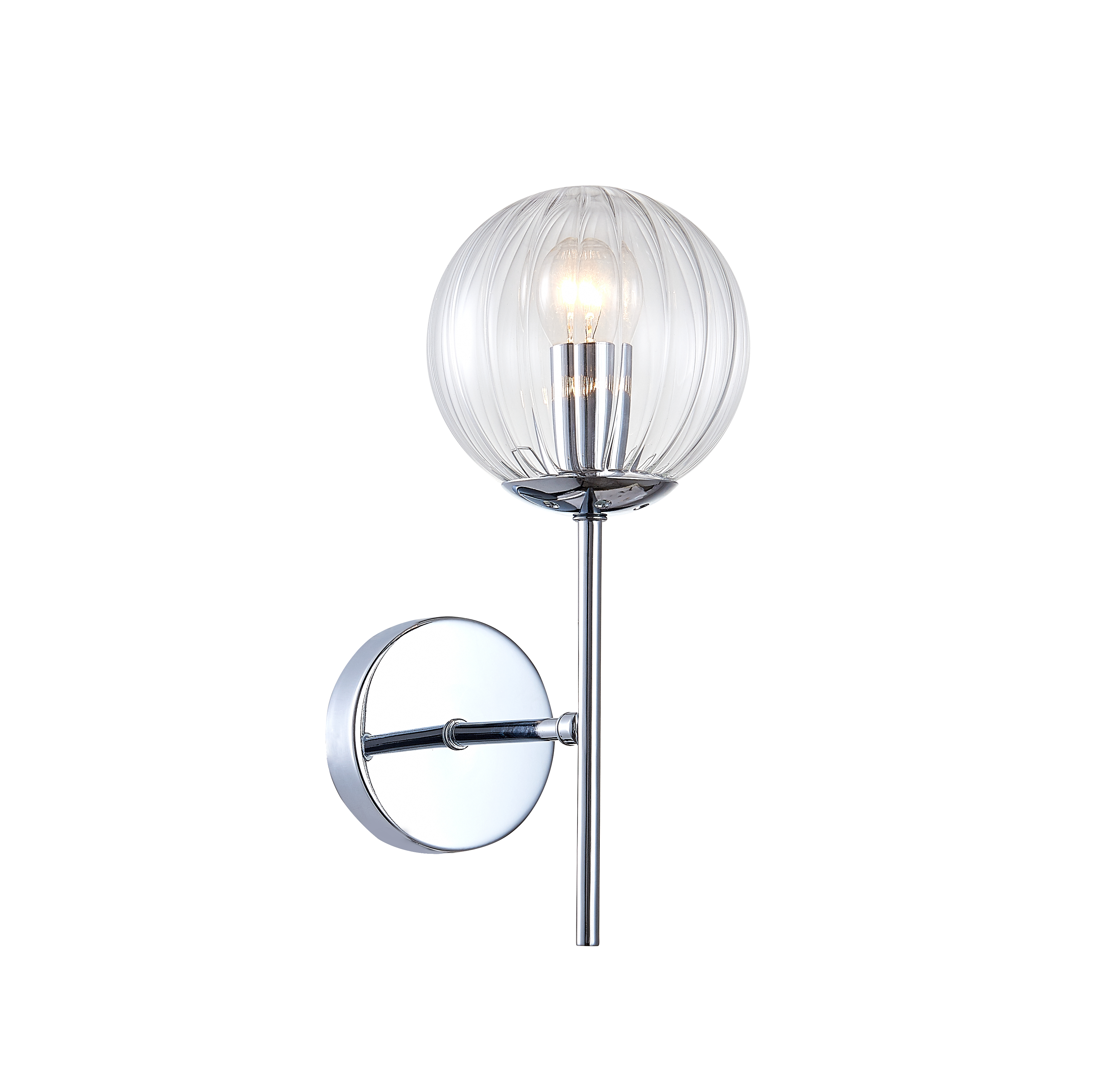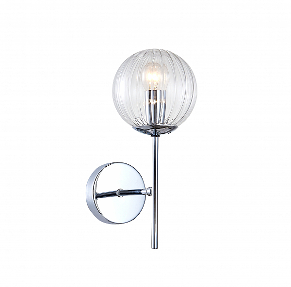 Бра из металла цвета хром с прозрачными фигурным плафоном. 1хЕ14