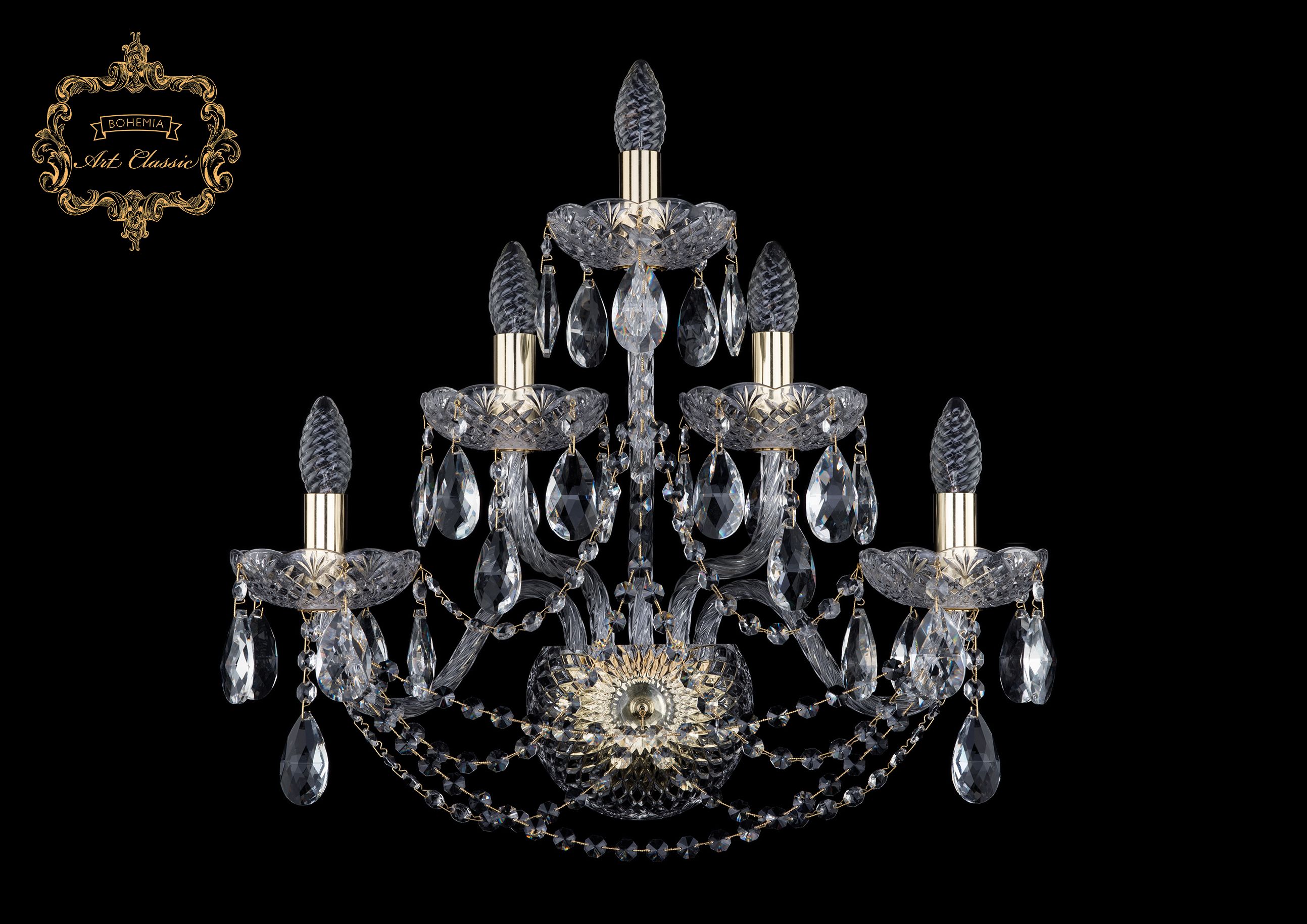 Допускается отличие страны-изготовителя, указанной в характеристиках. Линии производства могут находиться в нескольких государствах. Это не влияет на качество изготовления товара: все заводы данного бренда работают по общим стандартам, а готовые изделия проходят соответствующий контроль.Чехия Коллекция 11.11 ЦветЦвет арматуры Золото Цвет Прозрачный Материал арматуры Металл Цвет декора бесцветный Материал декора Хрусталь РазмерыВысота (мм) 470 Ширина (мм) 540 Глубина (мм) 300 ЭлектрикаКоличество ламп (шт) 5 Цоколь E14 Тип лампы Накаливания Мощность лампы (Вт) 40 Напряжение (В) 220 Площадь освещения 11 Дополнительная информацияСтепень защиты (IP) IP20 Вес (Кг) 4 -