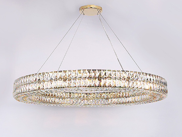 Допускается отличие страны-изготовителя, указанной в характеристиках. Линии производства могут находиться в нескольких государствах. Это не влияет на качество изготовления товара: все заводы данного бренда работают по общим стандартам, а готовые изделия проходят соответствующий контроль.США Коллекция 10120 ЦветЦвет арматуры полированное шапманское золото Цвет Золото Материал арматуры Железо крашеное Цвет декора прозрачный Материал декора Хрусталь РазмерыВысота (мм) 2610 Диаметр (мм) 1100 Высота минимальная (мм) 110 Ширина (мм) 115 ЭлектрикаКоличество ламп (шт) 25 Цоколь G9 Мощность лампы (Вт) 60 Дополнительная информацияТип подвеса На тросах -