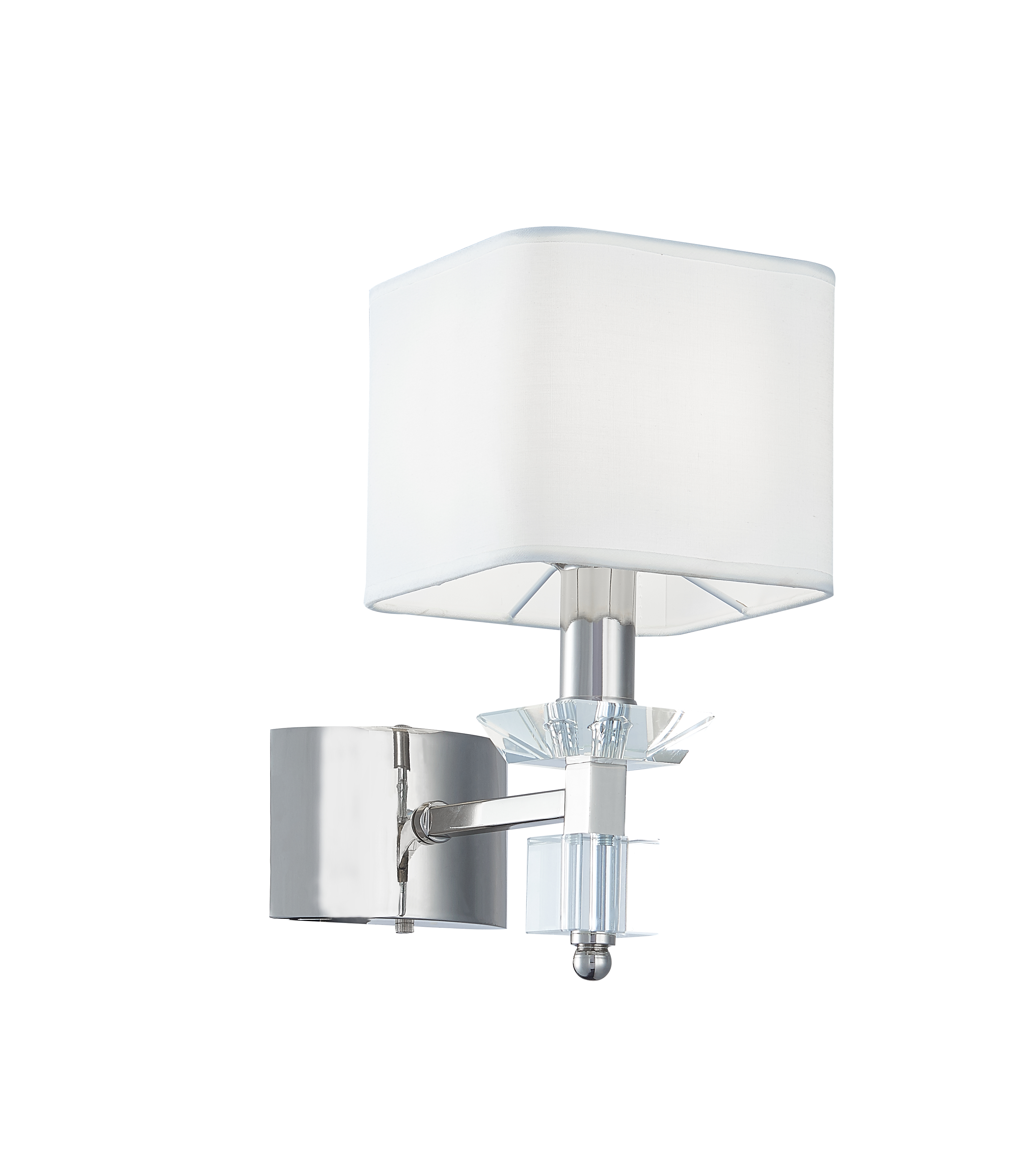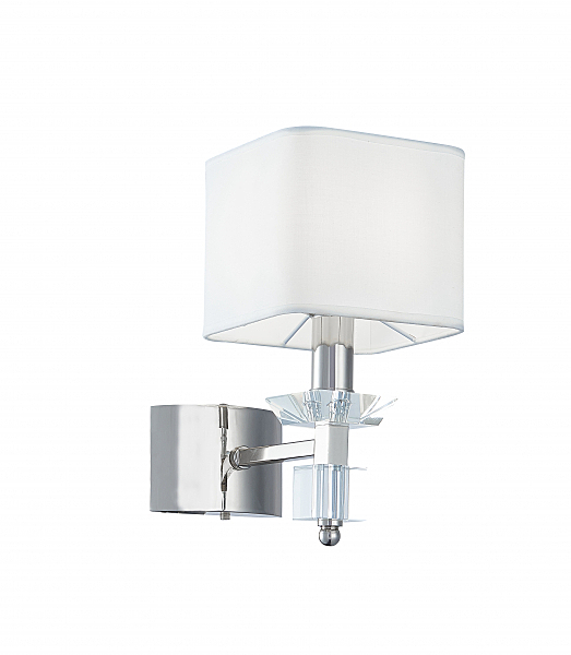 Бра из металла цвета глянцевый никель с квадратным абажуром и небольшим декоративным стеклянным элементом. 1хЕ14