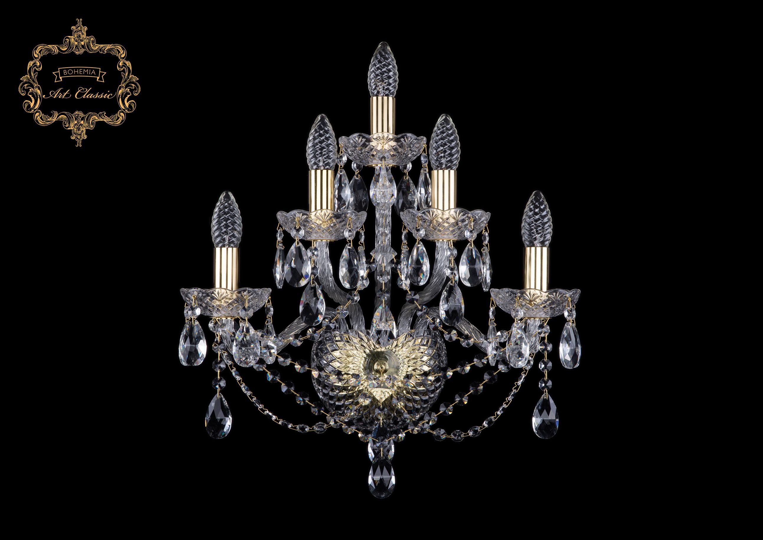 Допускается отличие страны-изготовителя, указанной в характеристиках. Линии производства могут находиться в нескольких государствах. Это не влияет на качество изготовления товара: все заводы данного бренда работают по общим стандартам, а готовые изделия проходят соответствующий контроль.Чехия Коллекция 11.21 ЦветЦвет арматуры Золото Цвет Прозрачный Материал арматуры Металл Цвет декора бесцветный Материал декора Хрусталь РазмерыВысота (мм) 450 Ширина (мм) 440 Глубина (мм) 170 ЭлектрикаКоличество ламп (шт) 5 Цоколь E14 Тип лампы Накаливания Мощность лампы (Вт) 40 Напряжение (В) 220 Площадь освещения 11 Дополнительная информацияСтепень защиты (IP) IP20 Вес (Кг) 3 -