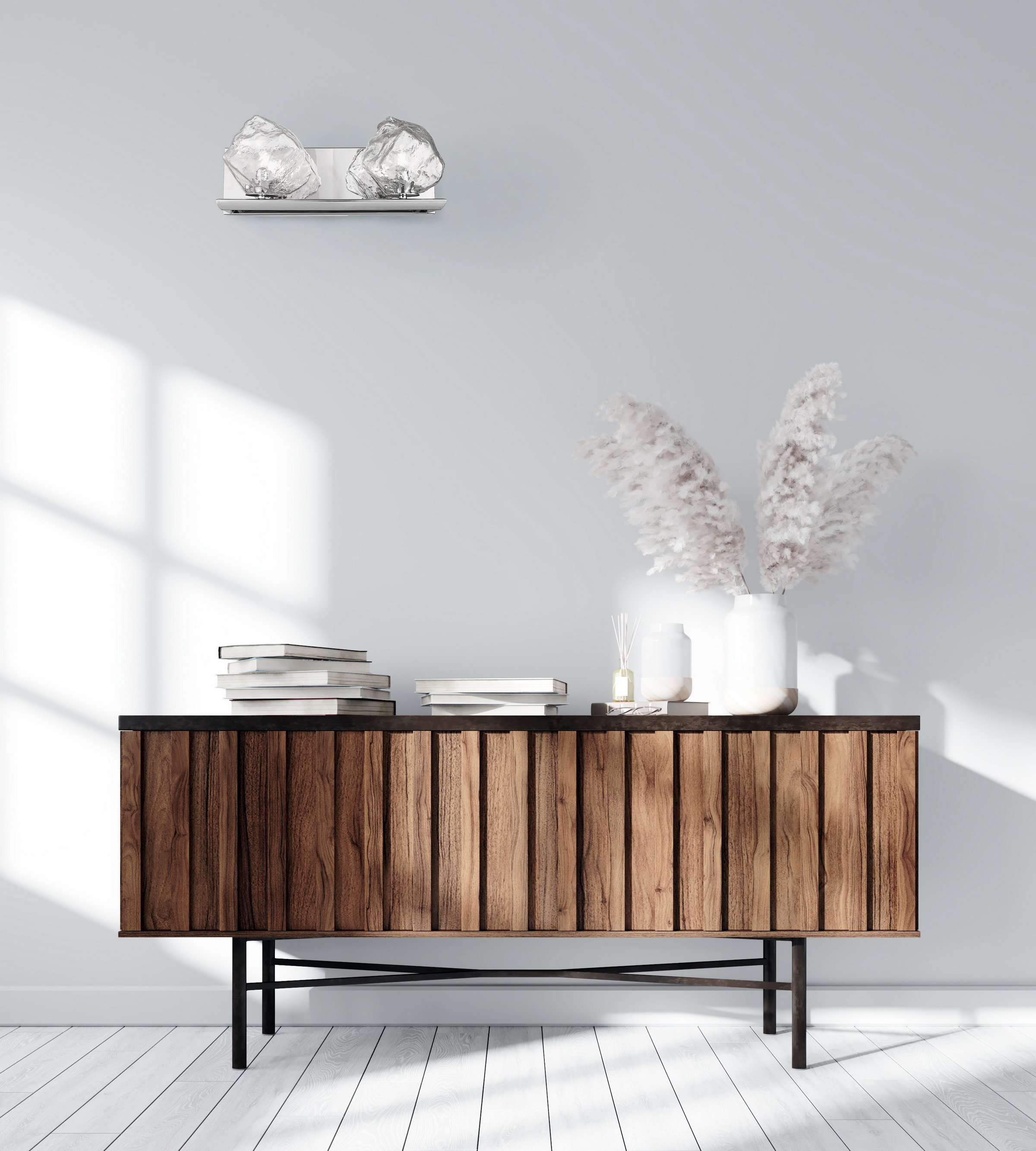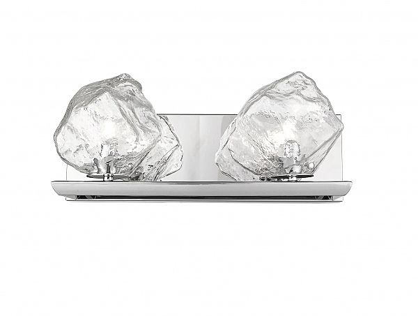 Бра из металла цвета хром и стеклянными плафонами напоминающими прозрачные глыбы льда. H170mm x L400mm x W190mm, 2хG9