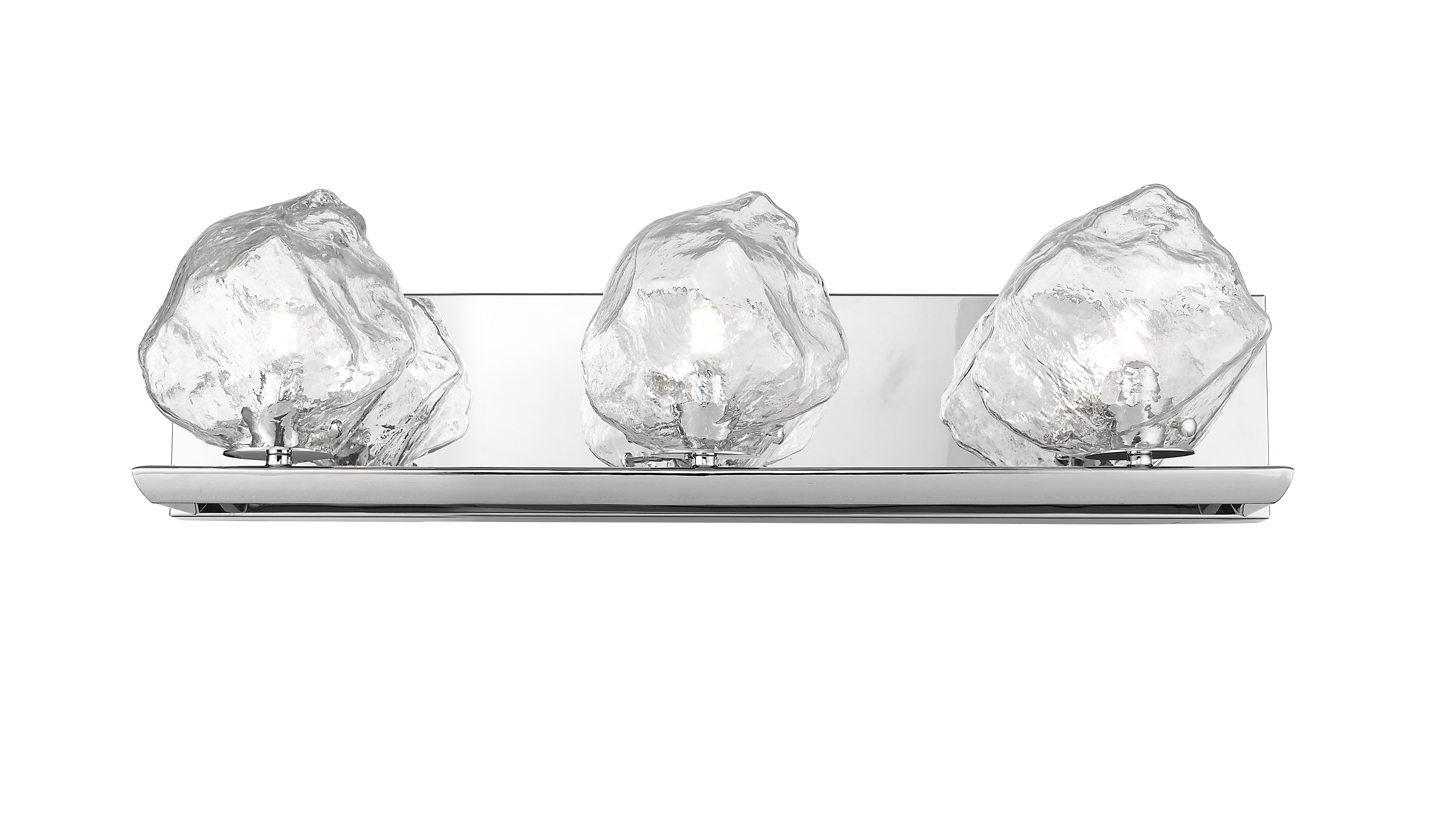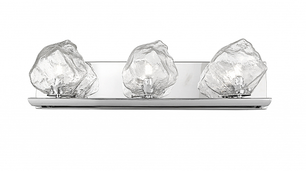 Бра из металла цвета хром и стеклянными плафонами напоминающими прозрачные глыбы льда. H170mm x L600mm x W190mm, 3хG9