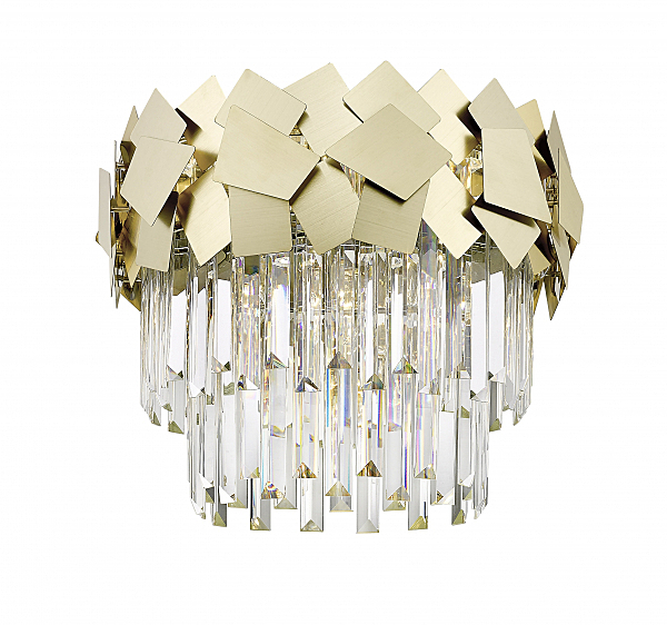 Потолочный светильник из металла цвета полированного (матового) золота с хрустальными подвесками. 5хЕ14