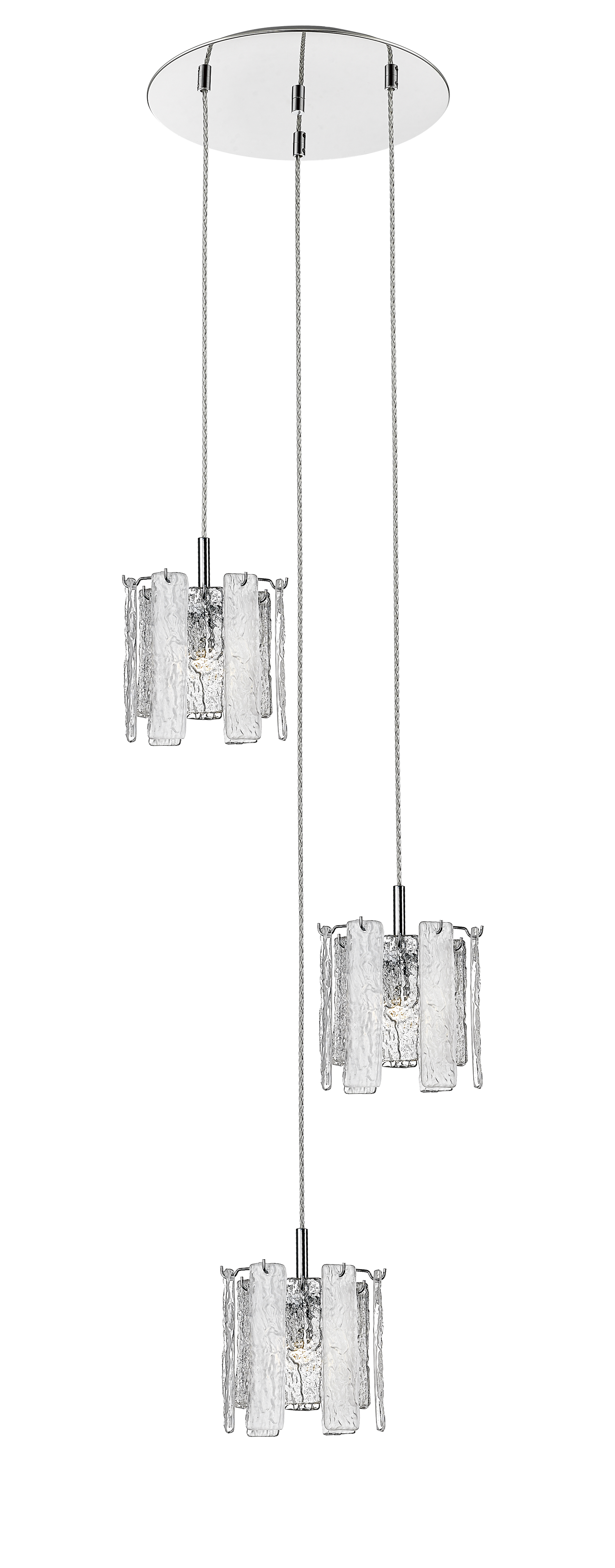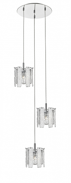 Подвес на круглом хромовом основании с прямоугольными, тонкими, стеклянными, прозрачными и матовыми элементами.3хG9