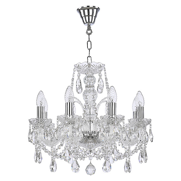 Допускается отличие страны-изготовителя, указанной в характеристиках. Линии производства могут находиться в нескольких государствах. Это не влияет на качество изготовления товара: все заводы данного бренда работают по общим стандартам, а готовые изделия проходят соответствующий контроль.Чехия Коллекция 105 ЦветЦвет арматуры Никель Цвет Никель Материал арматуры Металл, Стекло Цвет декора прозрачный РазмерыВысота (мм) 430 Диаметр (мм) 500 ЭлектрикаКоличество ламп (шт) 8 Цоколь E14 Лампочки в комплекте Нет в комплекте Мощность лампы (Вт) 40 Дополнительная информацияСпособ крепления Крюк Степень защиты (IP) IP20 Вес (Кг) 6 Тип подвеса На цепи -