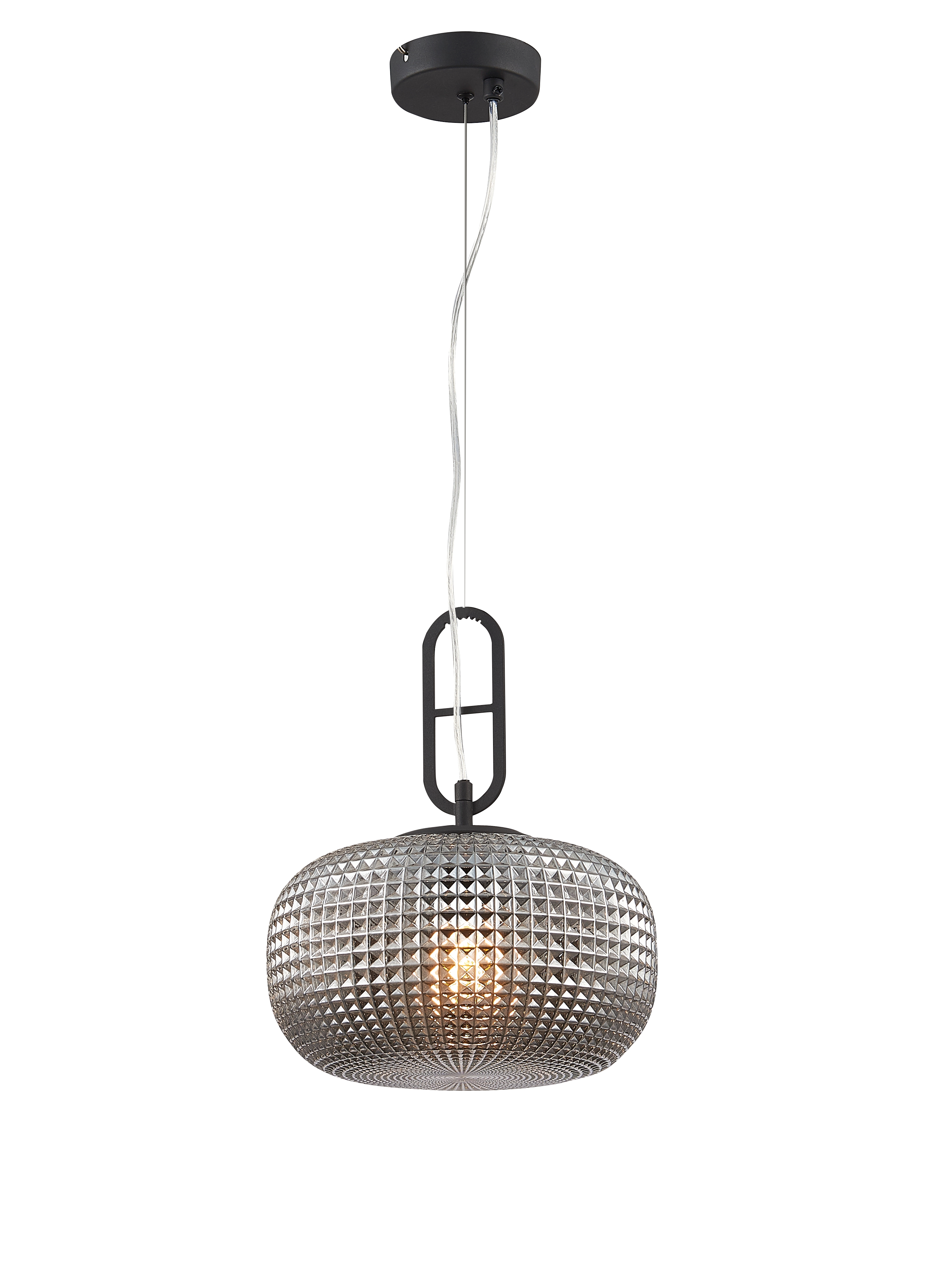Подвес из арматуры черного цвета и рифленого дымчатого стекла. 1хЕ27