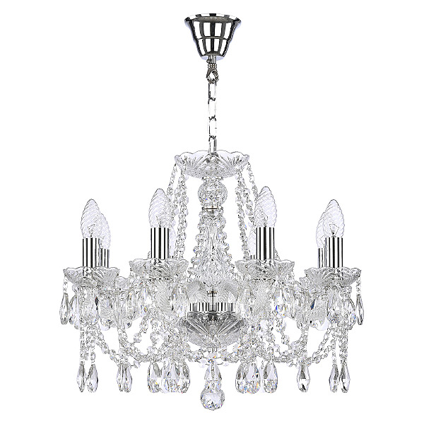 Допускается отличие страны-изготовителя, указанной в характеристиках. Линии производства могут находиться в нескольких государствах. Это не влияет на качество изготовления товара: все заводы данного бренда работают по общим стандартам, а готовые изделия проходят соответствующий контроль.Чехия Коллекция 107 ЦветЦвет арматуры Никель Цвет Никель Материал арматуры Металл, Стекло Цвет декора прозрачный РазмерыВысота (мм) 410 Диаметр (мм) 500 ЭлектрикаКоличество ламп (шт) 8 Цоколь E14 Лампочки в комплекте Нет в комплекте Мощность лампы (Вт) 40 Дополнительная информацияСпособ крепления Крюк Степень защиты (IP) IP20 Вес (Кг) 6 Тип подвеса На цепи -