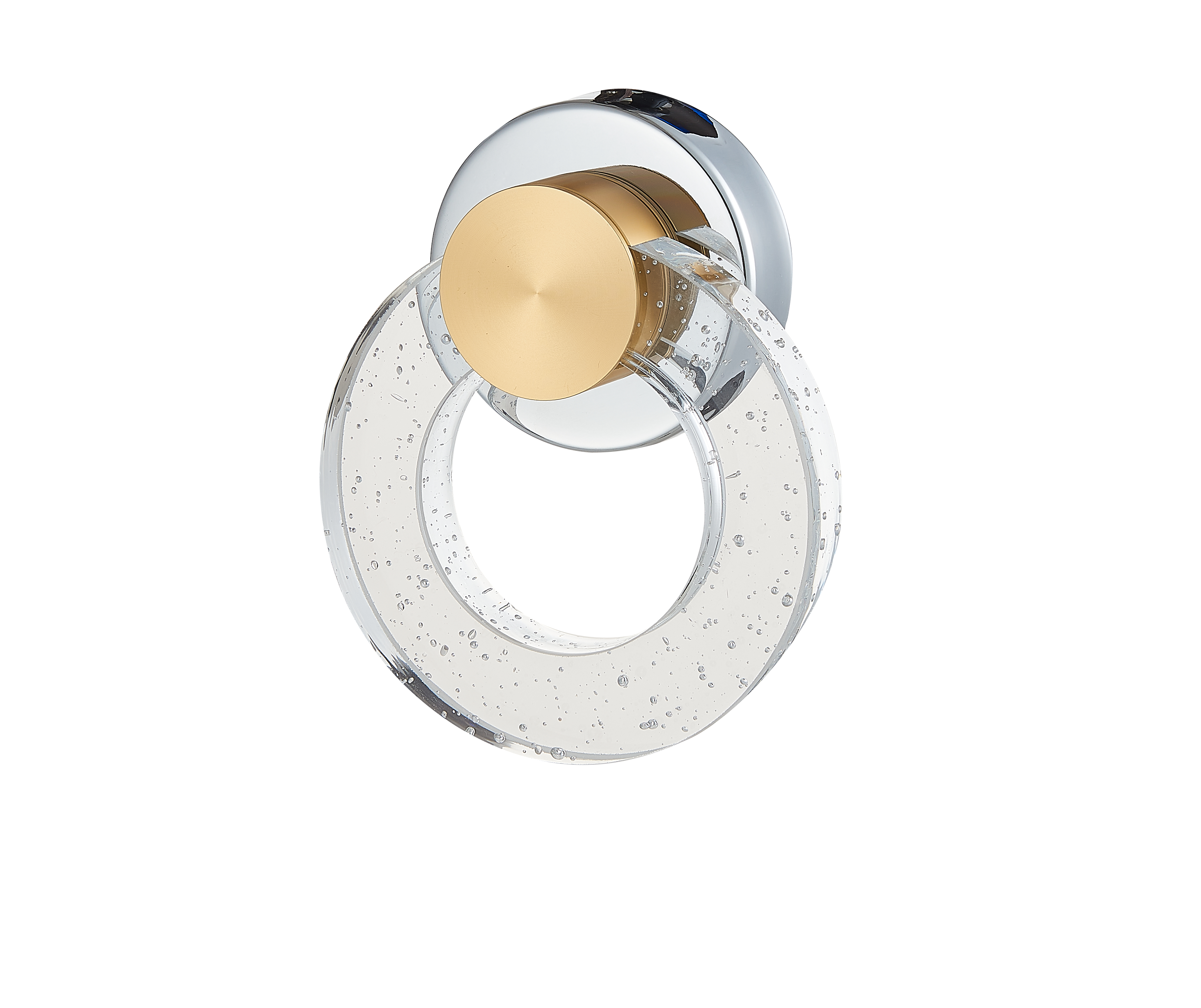 Бра из металла цвета хром с массивным хрустальным кольцом и элементом цвета полированного золота. Источник света LED 4W 4000К. H180mm x L150mm x W60mm